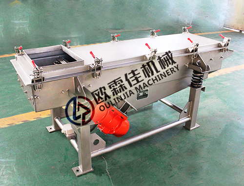 不銹鋼直線篩是歐霖佳機(jī)械主營產(chǎn)品之一,該篩分機(jī)是利用臥式振動電機(jī)激振作為振動源,使物料在篩網(wǎng)上被拋起,同時向前作直線運(yùn)動,故稱作直線振動篩,又稱直線篩;物料從給料機(jī)均勻地進(jìn)入篩分機(jī)的進(jìn)料口,通過多層篩網(wǎng)產(chǎn)生數(shù)種規(guī)格的篩上物、篩下物、分別從各自的出口排出。具有耗能低、產(chǎn)量高、結(jié)構(gòu)簡單、易維修、全封閉結(jié)構(gòu),無粉塵溢散,自動排料,更適合于流水線作業(yè)。